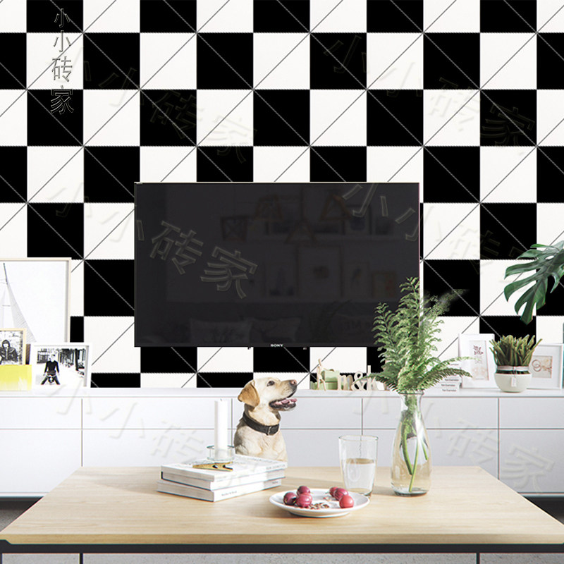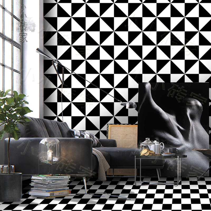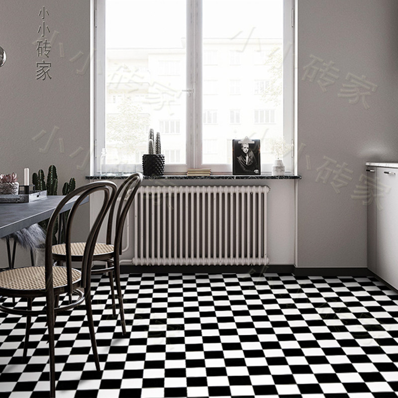 Nordic IKEA kitchen powder room tiles black and white lattice wall tiles toilet floor tiles American white tiles 300 glazed tiles