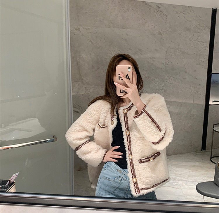 sandro moskoloni small fragrant wind lamb wool coat female winter thickened fur coat loose with short