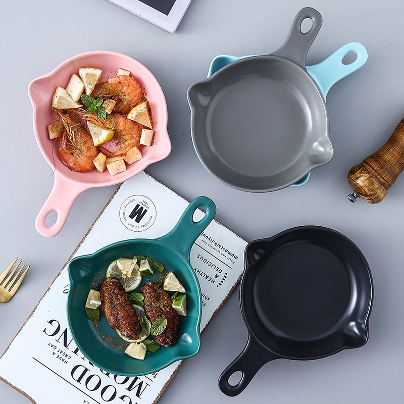 Creative round with a ceramic baking tray oven with baking pan Nordic home cheeseware Baking Rice Bowl for Children's Breakfast tray