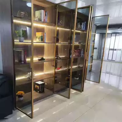 New light luxury minimalist narrow side tempered door aluminum alloy Brown transparent glass cabinet door wine cabinet whole cabinet swing door