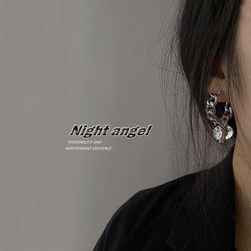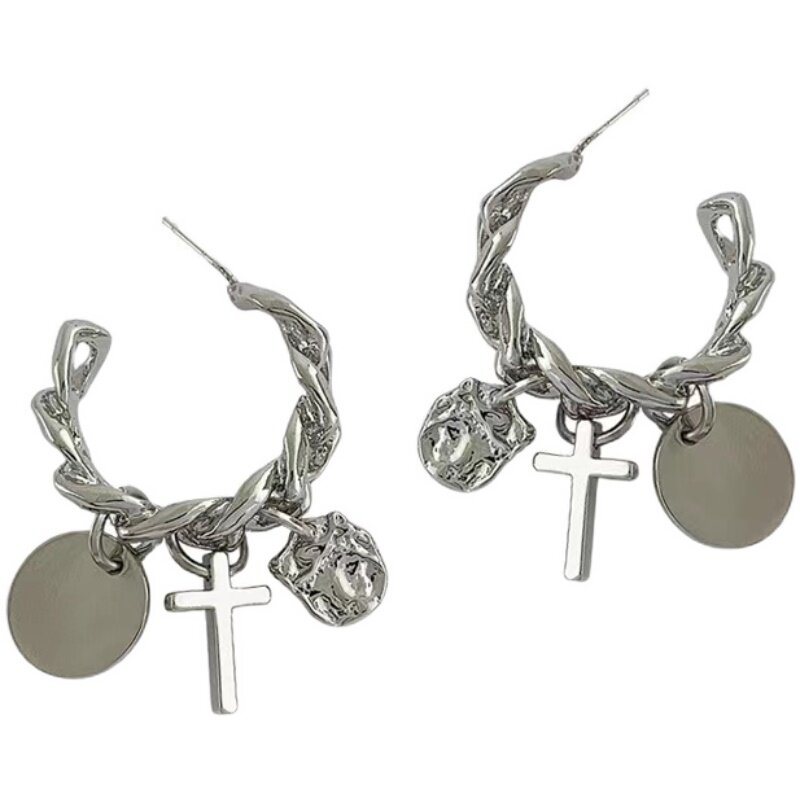 Trendy C-type metal earrings metal trampoline Heavy work minimalist about 100 hitch lukewarm wind ear adorned ear pin cross pendant