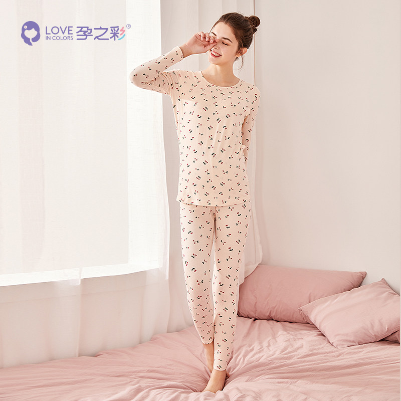 Pregnancy color maternity clothing Mori women's winter and autumn clothing sanitary pants set postpartum nursing furniture confinement clothing winter warm clothing