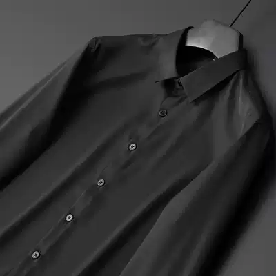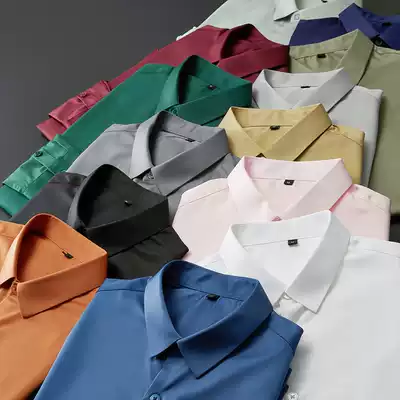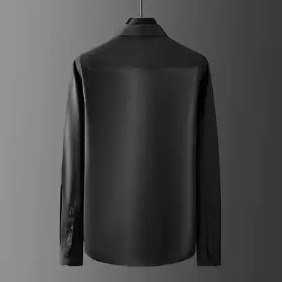 Light luxury quality 2021 summer thin section free ironing mercerized solid color shirt men's long-sleeved casual inch slim-fit business shirt