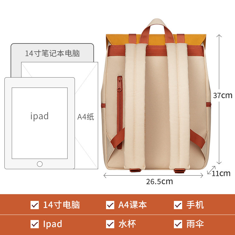 MAH niche design junior high school student school bag women simple solid color backpack men's 14 inch computer bag travel shoulder bag