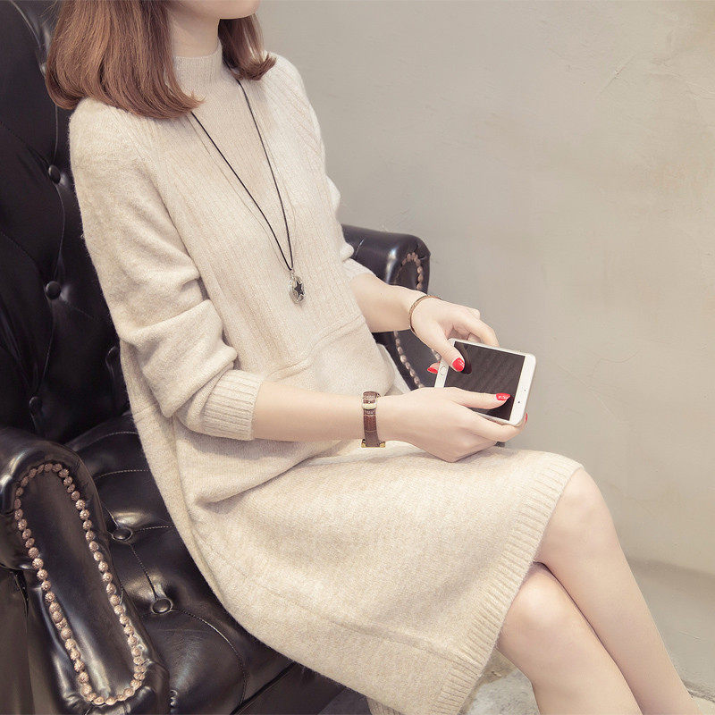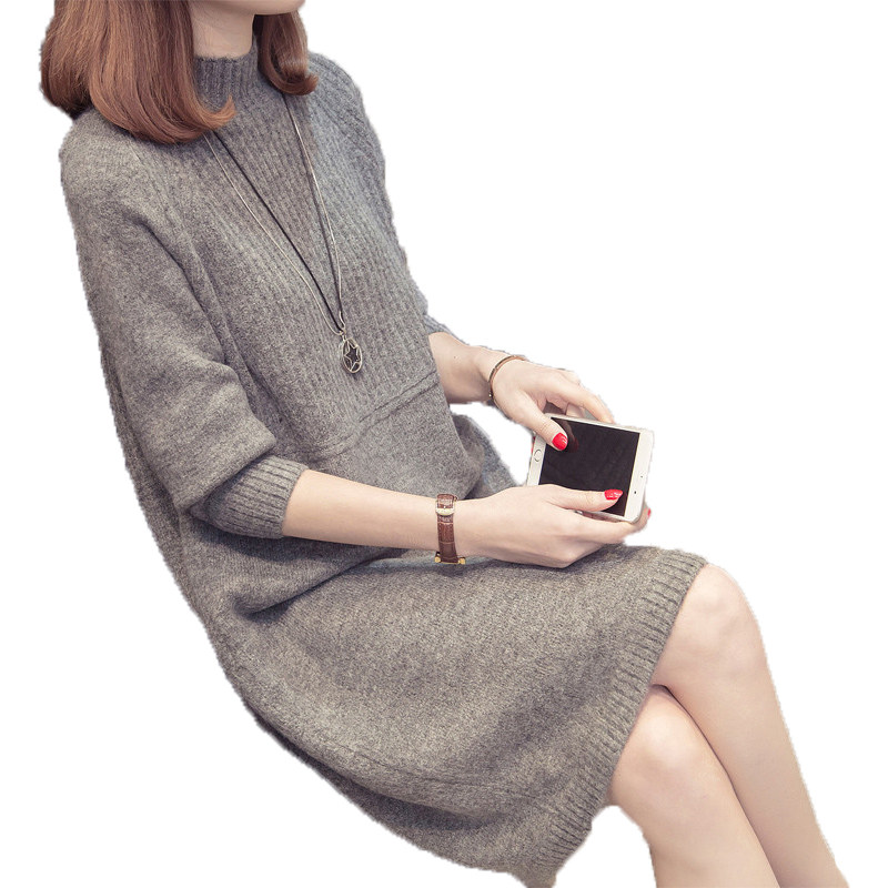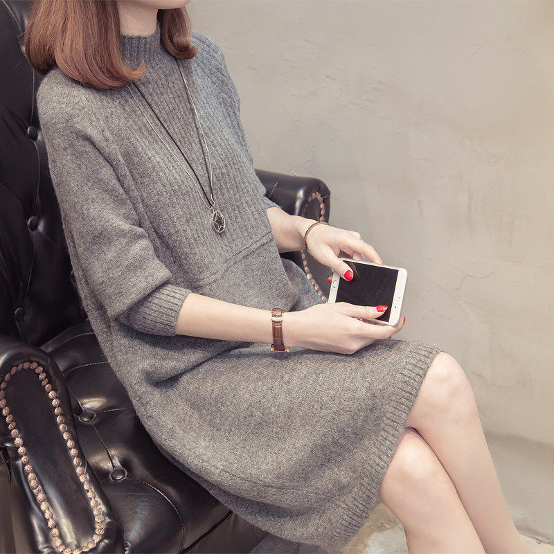 Pregnant Women's Ocean Dress Autumn Winter 2021 New Pregnant Women's Sweater Mid 2021 Long version of the undershirt Pregnant Woman Skirt Woman dress