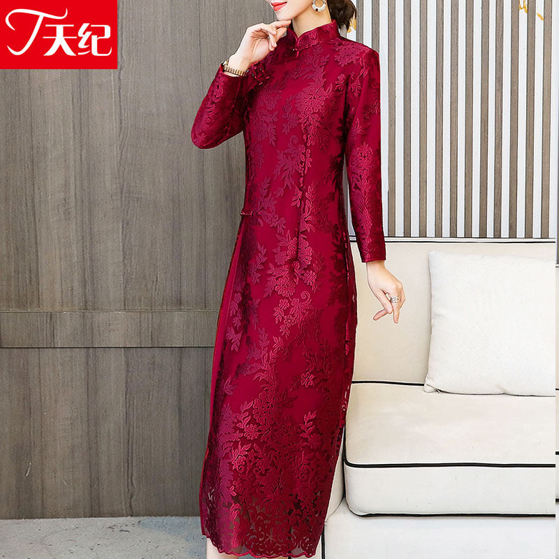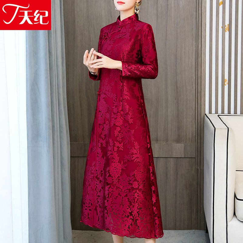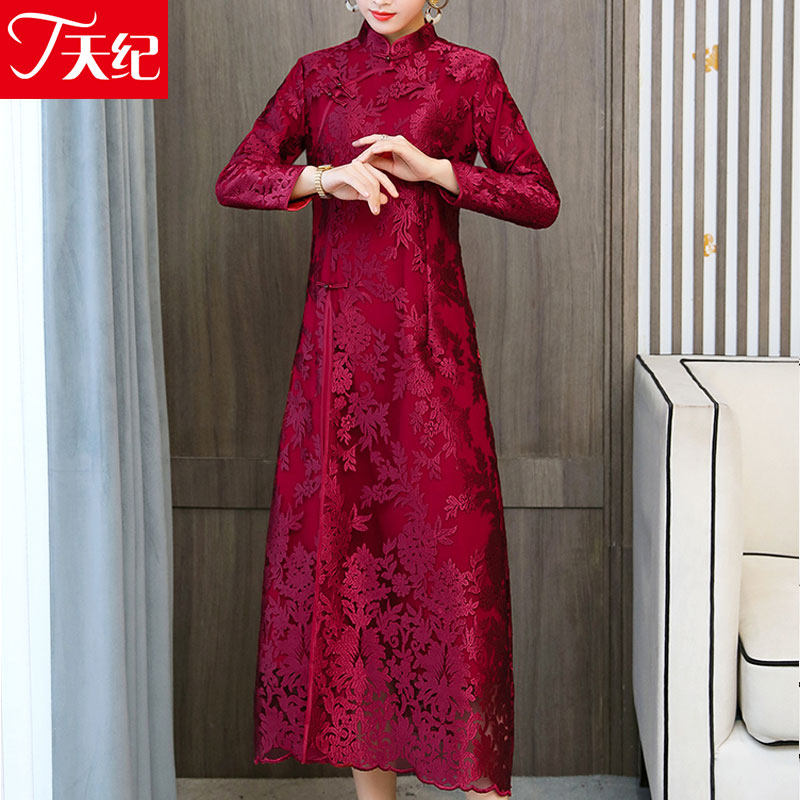 Joy Mother-in-law Qipao Dress Woman Young to Marry Mom Noble Wedding Suit Red Foreign Pie This Life Long Dress