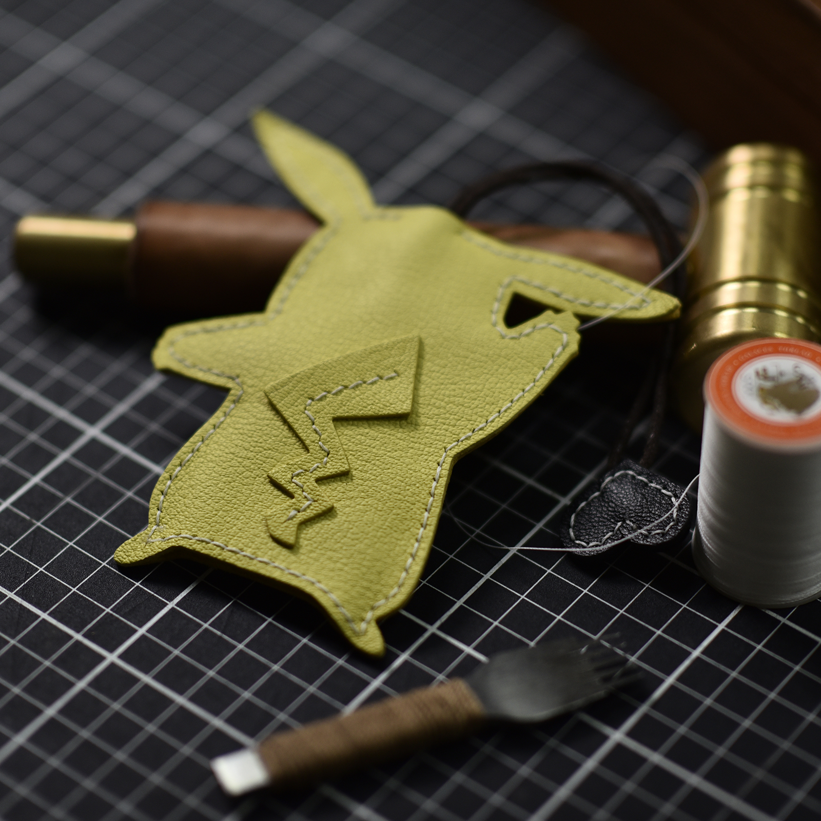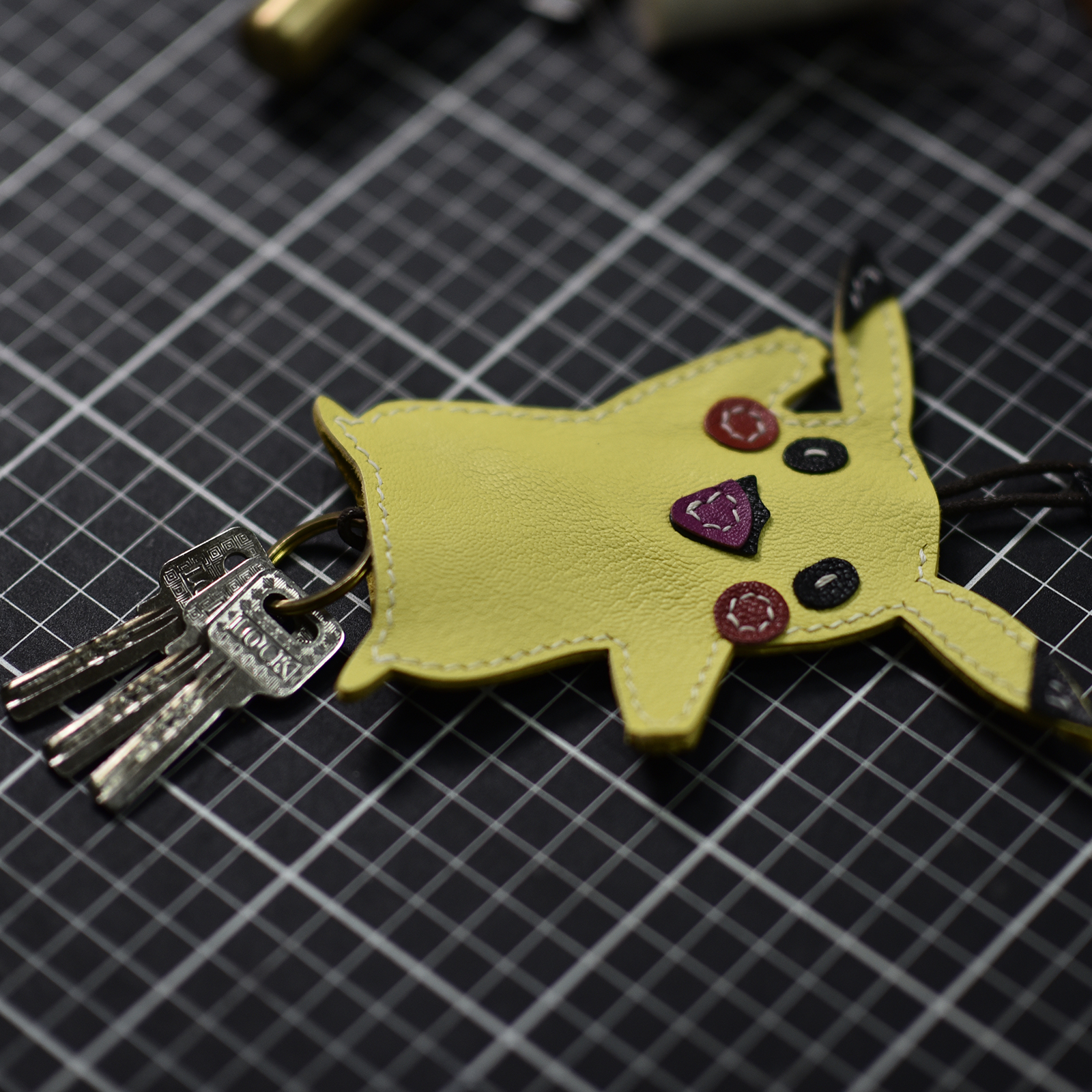 Pikachu key bag first layer cowhide hand stitched cartoon pendant home key bag men and women schoolbag leather pendant
