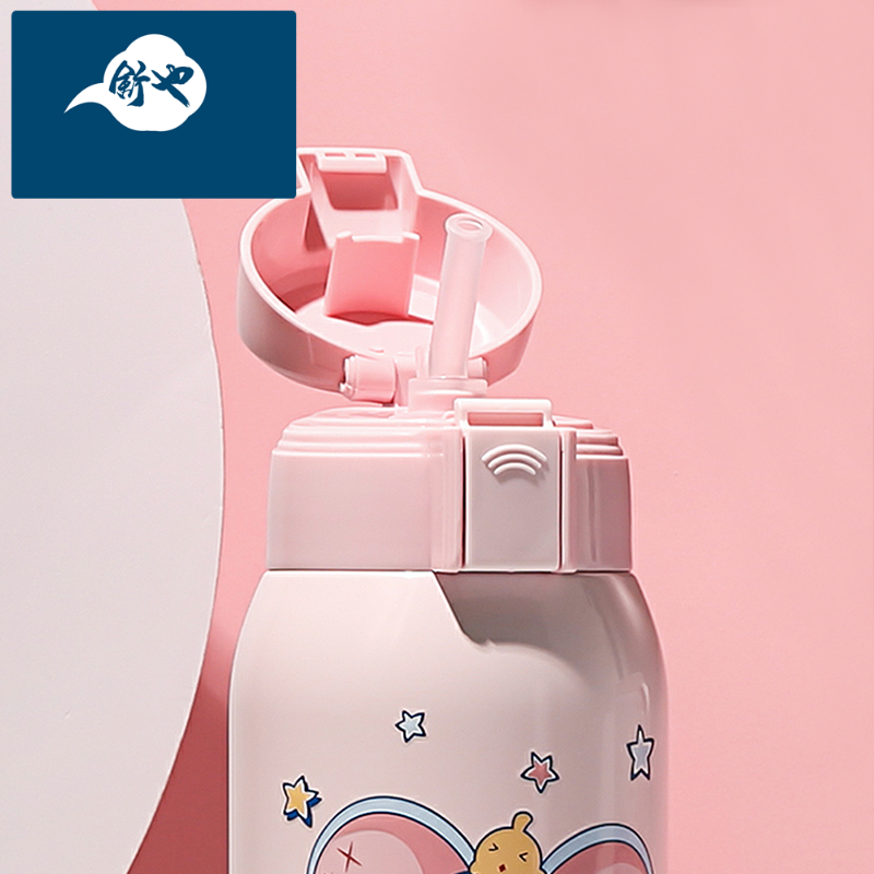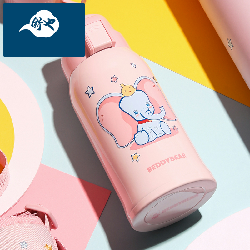 Children's thermos cup Dumbo cartoon cute straw cup baby with cup sleeve student girl water cup