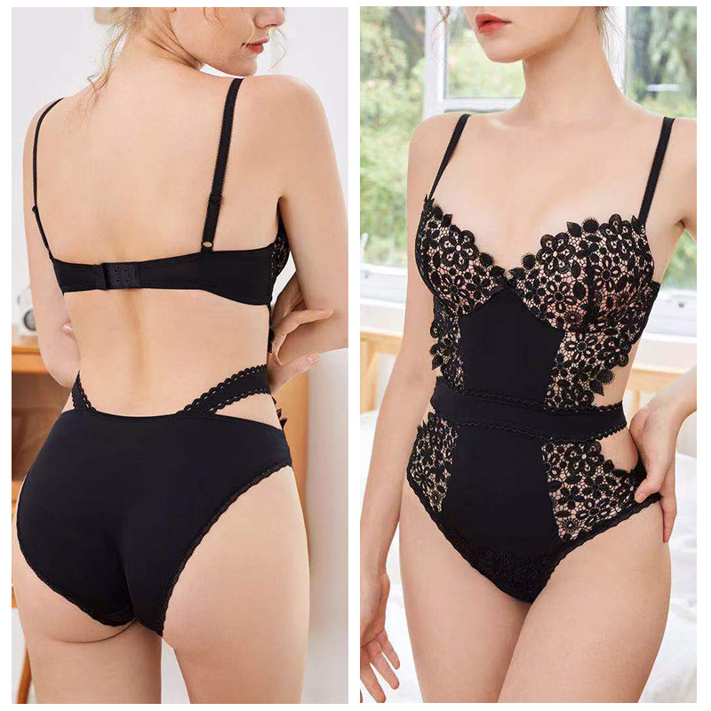 French Customs romantic sexy hyphens water soluble flower plastic body BCD cups hollowed-out beauty back midnight temptation
