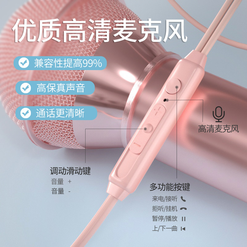 Original girls cute headphones wired in-ear high-sound quality in-line control with McK song game heavy bass applicable vivo Huawei oppo round hole earbuds mobile phone computer 3 5mm universal sub