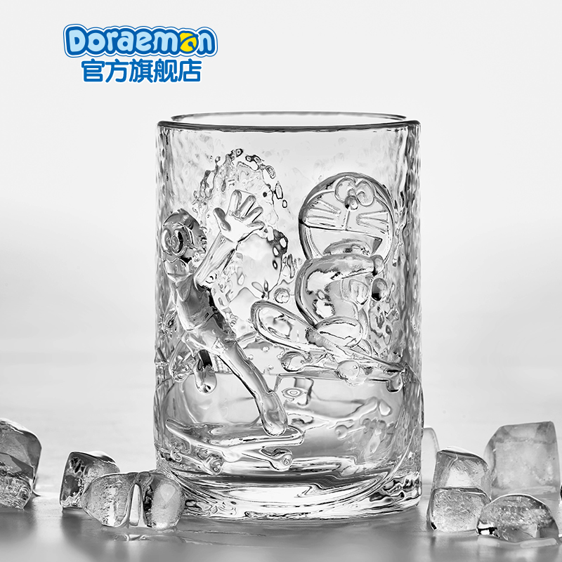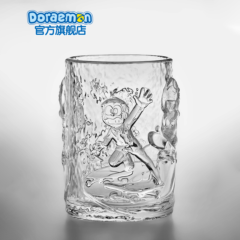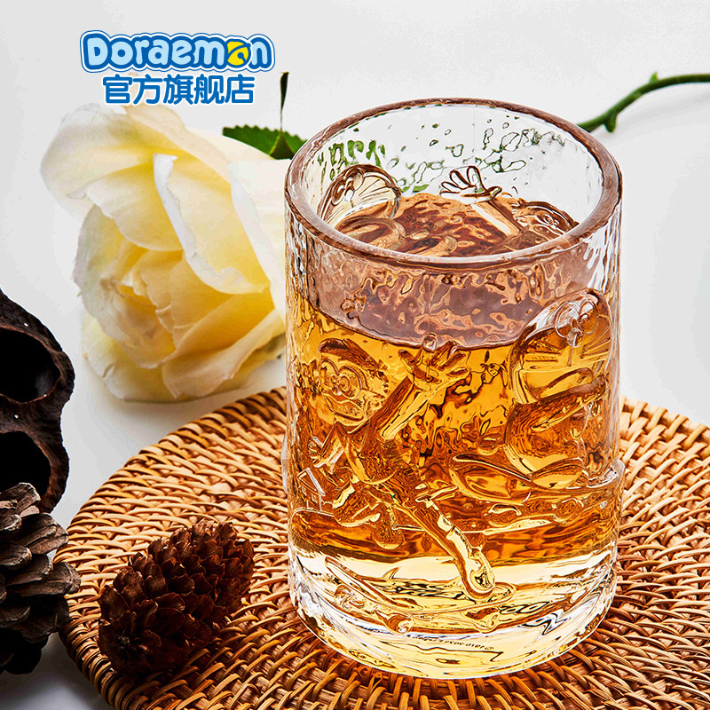 Aiying authorized Doraemon embossed glass cup drinking tea drinking cup office cup double-layer anti-scalding cup