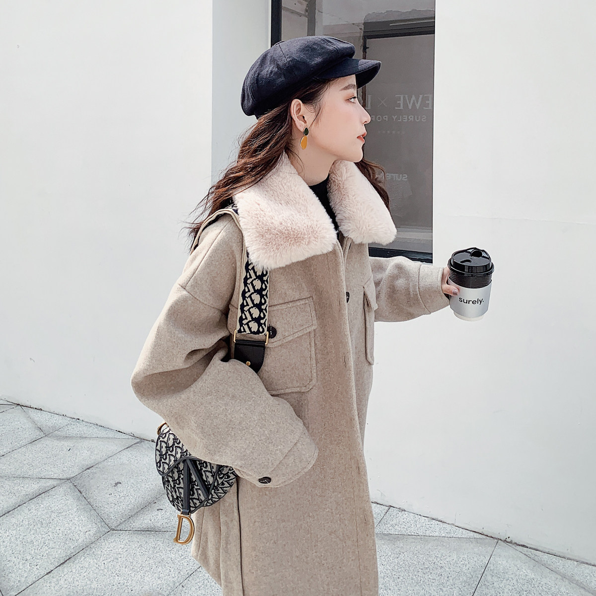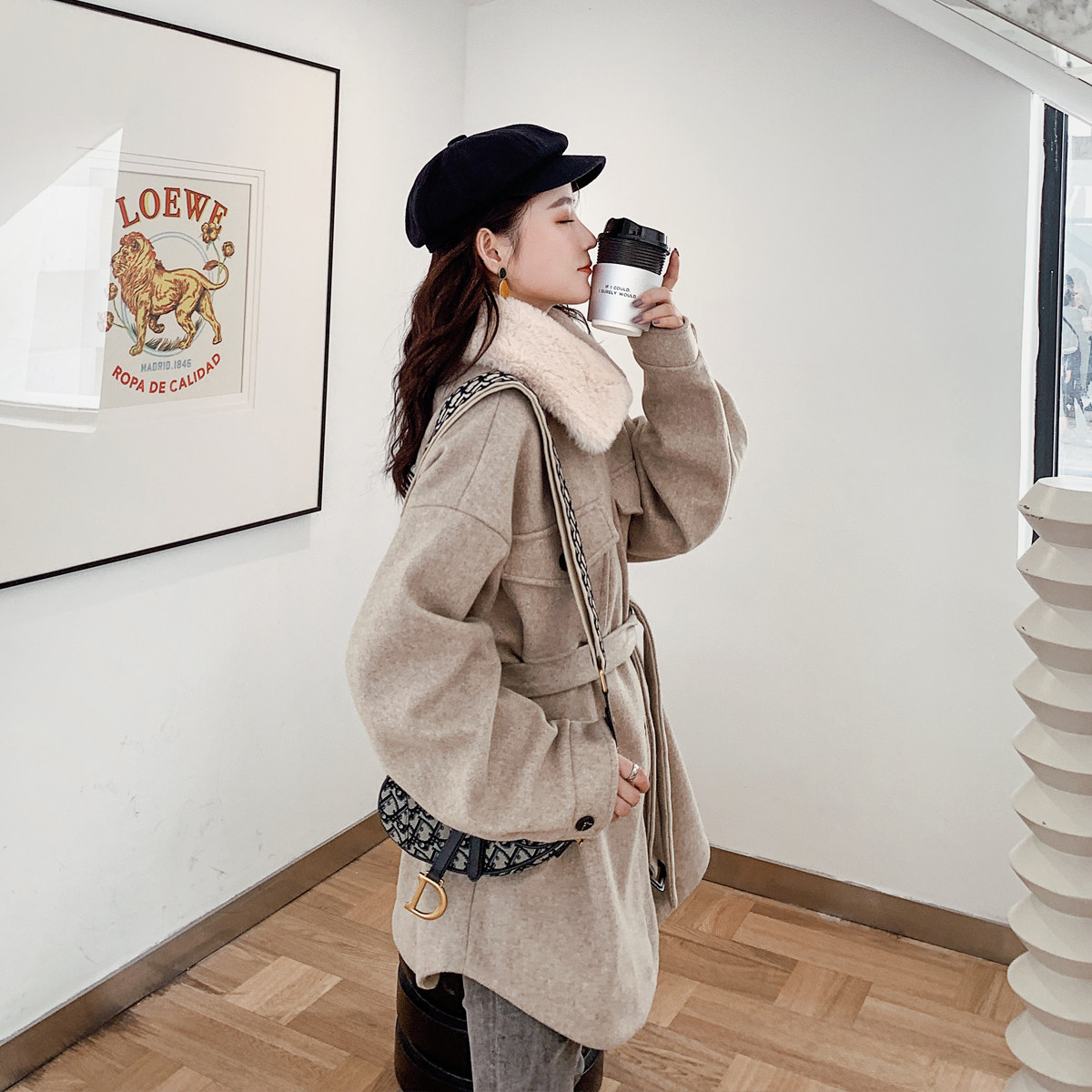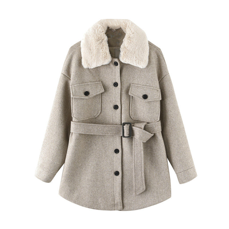SADO YINER wild lace-up wool coat women's 2021 spring waist loose cashmere coat medium and long version