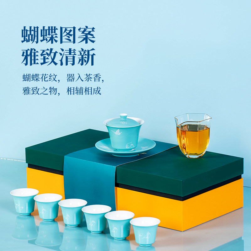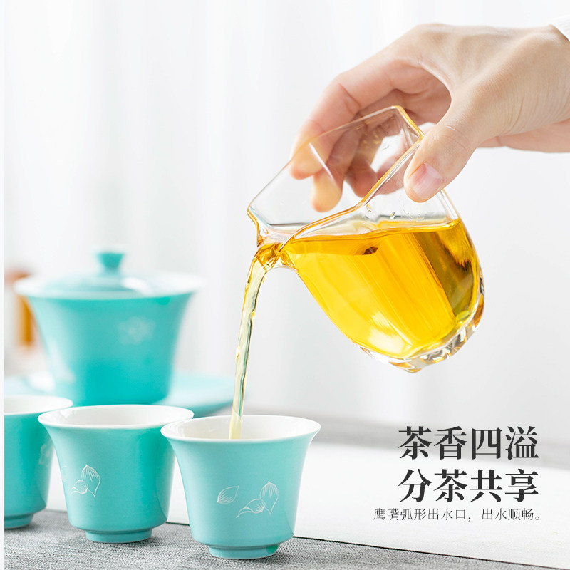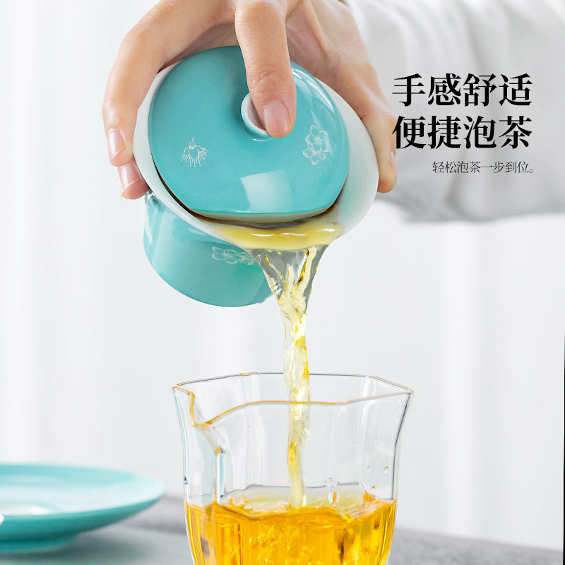 Su Tea Ceramic Xiaoqing Kung Fu Tea Set Household Small Set Three-Take a Bowl Simple Tea Cup Office Members