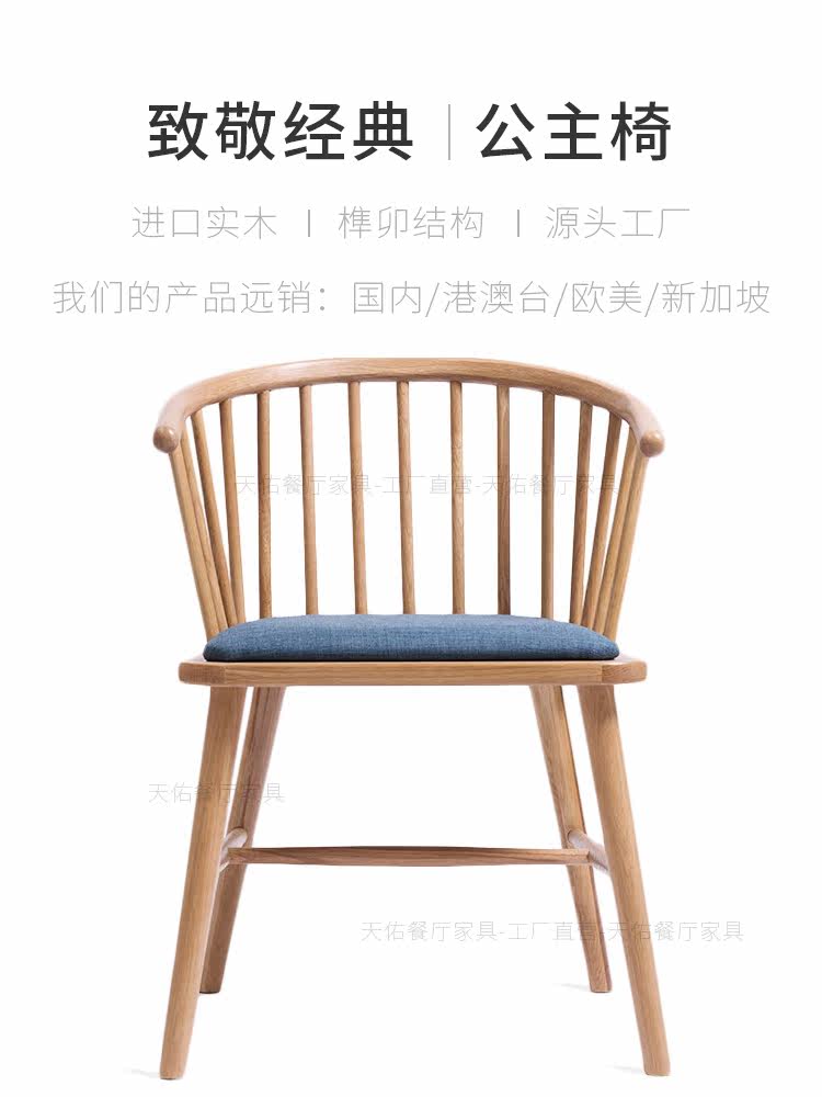 Nordic commercial home solid wood armrest dining chair Windsor chair horn Japanese chair president princess chair octagonal chair customization