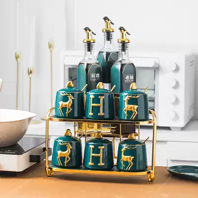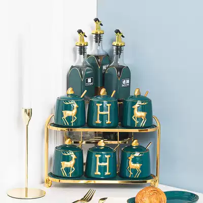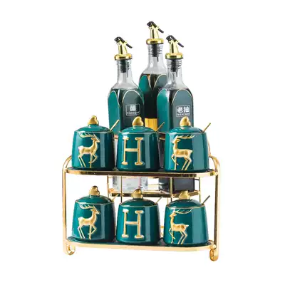 Kitchen seasoning products, oil, salt, sauce and vinegar, a full set of seasoning jars, a combination of seasoning boxes, a set of household ceramic seasoning cans