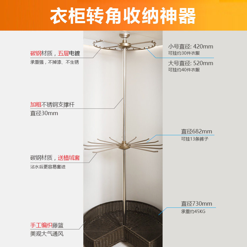 BRK wardrobe closet cloakroom corner rotating hanger pants rack pull basket S-shaped 360 degree rotating hanger