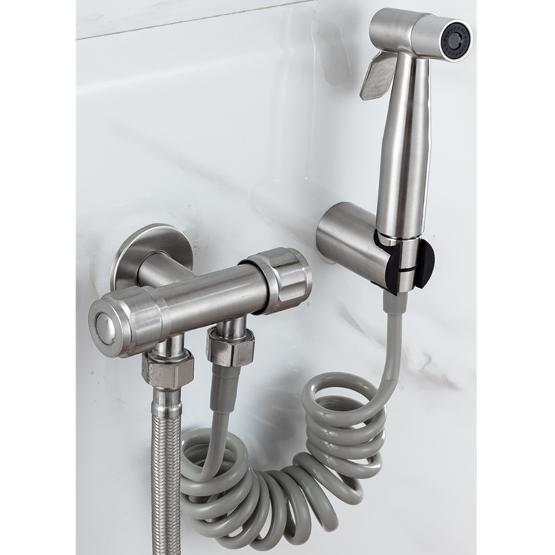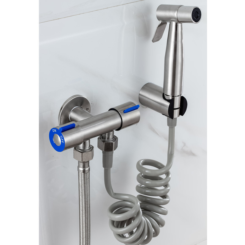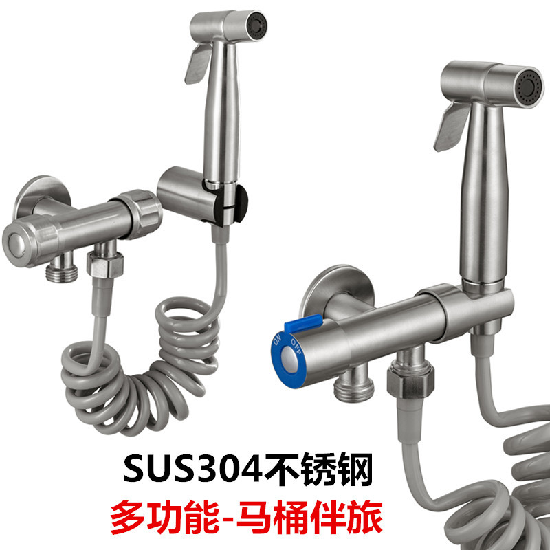 sus304 stainless steel angle valve with spray gun angle valve multifunction thickened one-in-two-out toilet double use angle valve