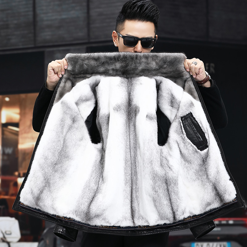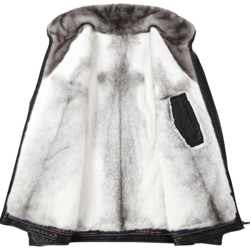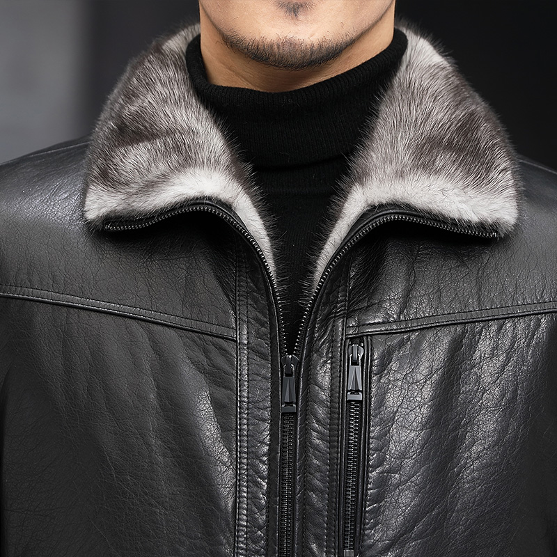 Leather leather clothing men's cross mink whole mink liner cowhide short leather jacket Fur one-piece men's thickened mink coat
