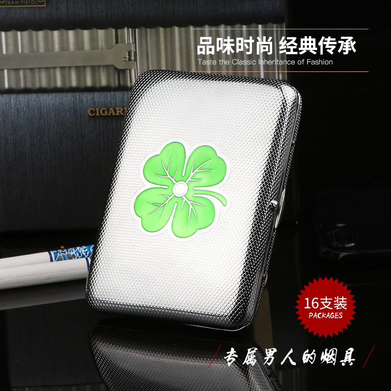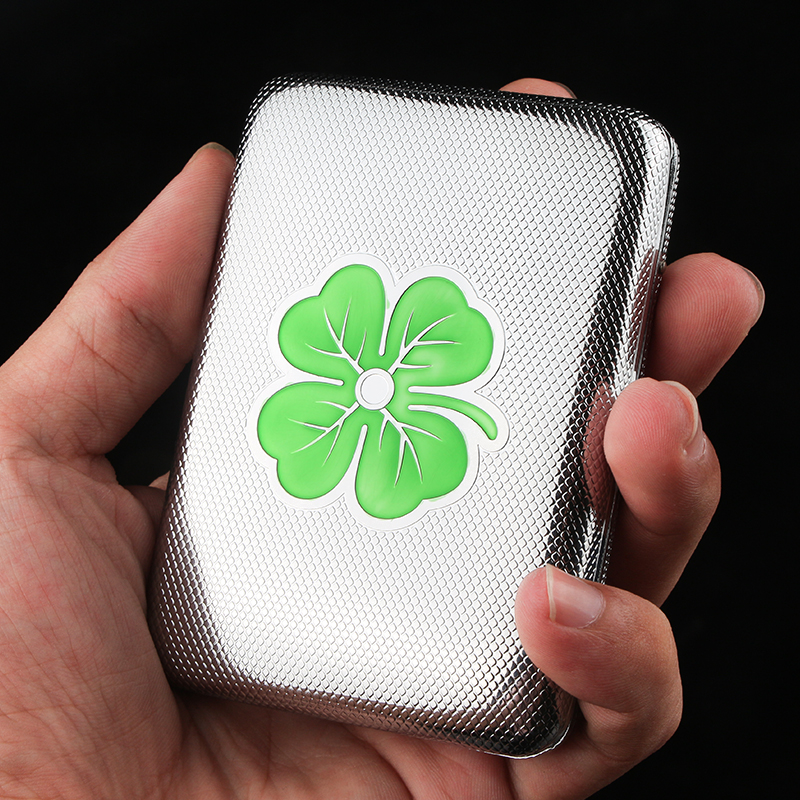 Fashion men's and women's ultra-thin pure copper cigarette case 16 sticks four-leaf clover cigarette clip anti-pressure moisture-proof outdoor portable cigarette case - Taobao