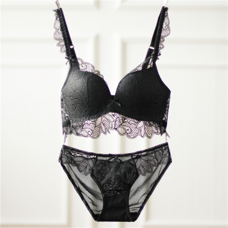 Lady bra thickened with small breasts gathered Sexy lace No steel ring Comfortable Beauty Back Teen Lingerie Suit Autumn Winter New