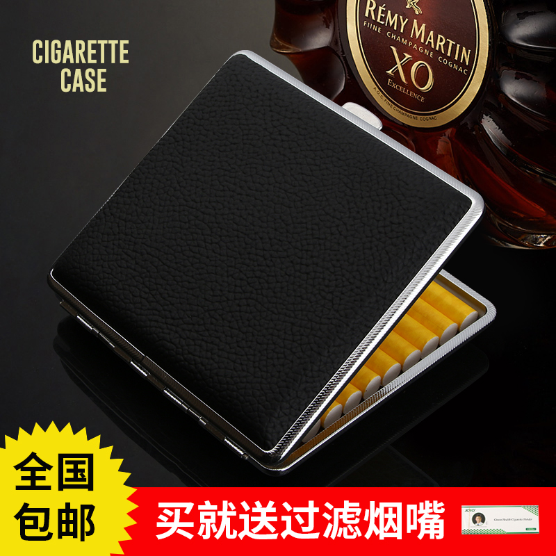 High-grade leather ultra-thin men's and women's 16-piece cigarette case personality 20-piece cigarette clip cigarette case outdoor portable anti-pressure - Taobao