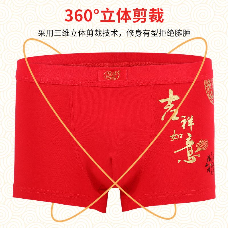 Langsha red underwear men's natal year cotton big red men's boxer shorts are the year of the ox boxer briefs wedding shorts men