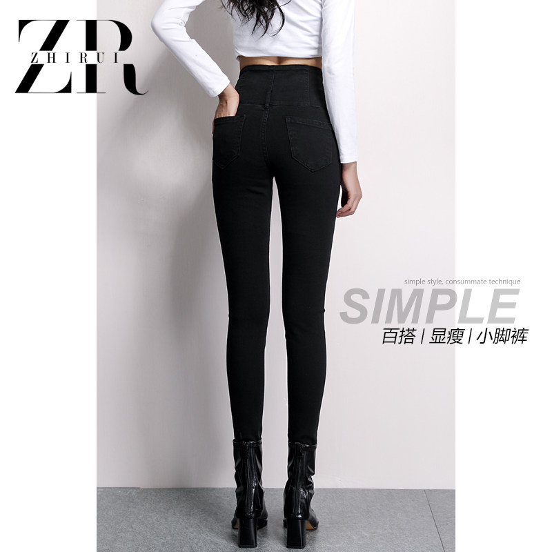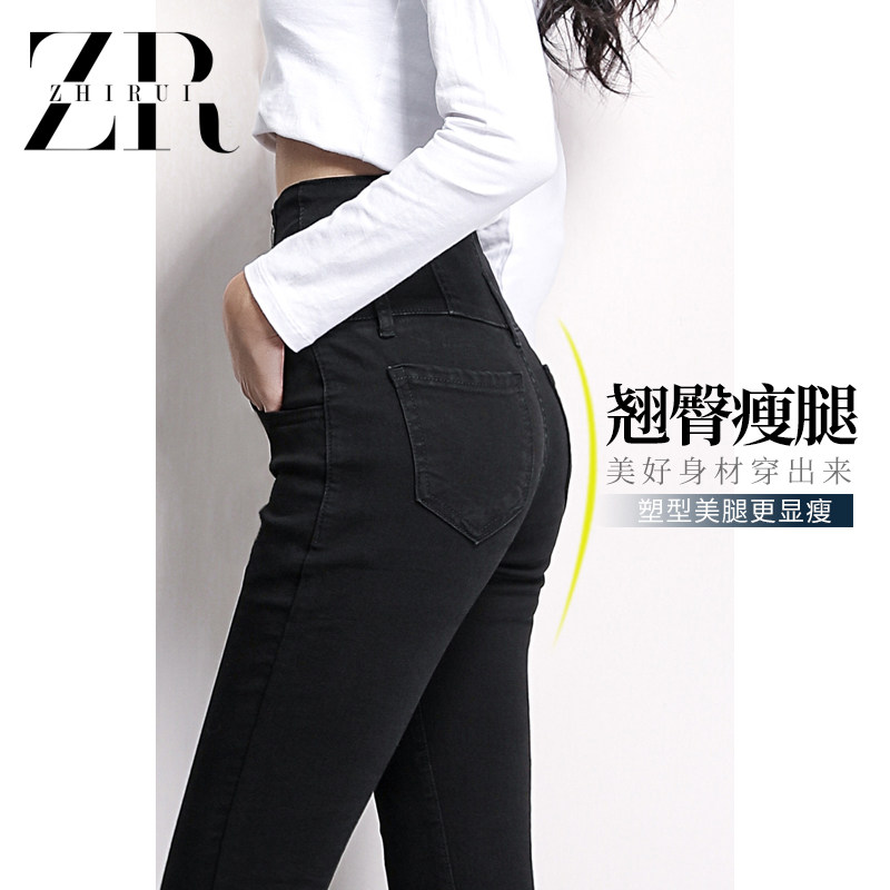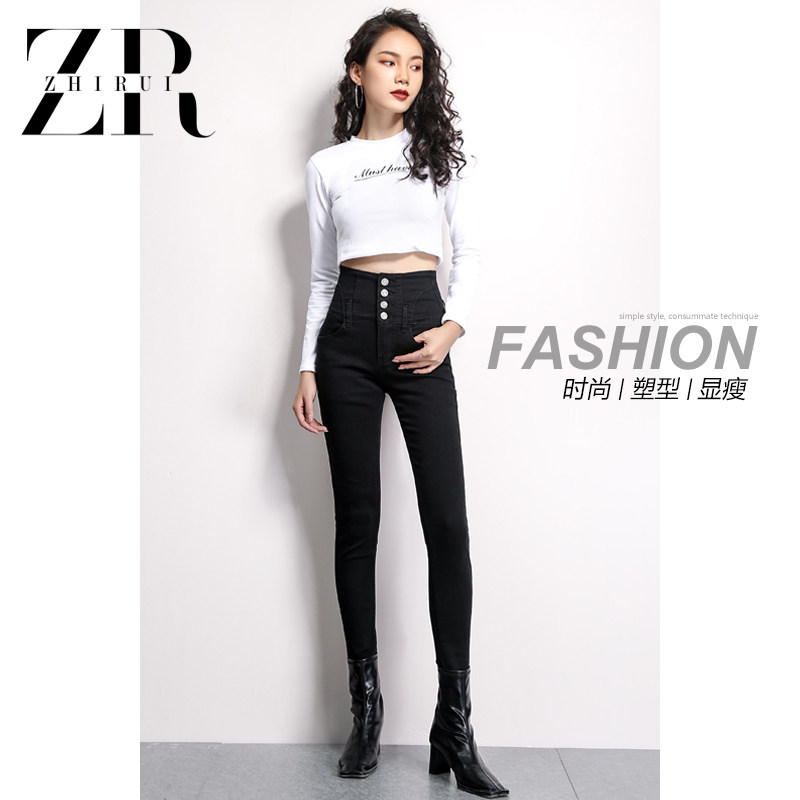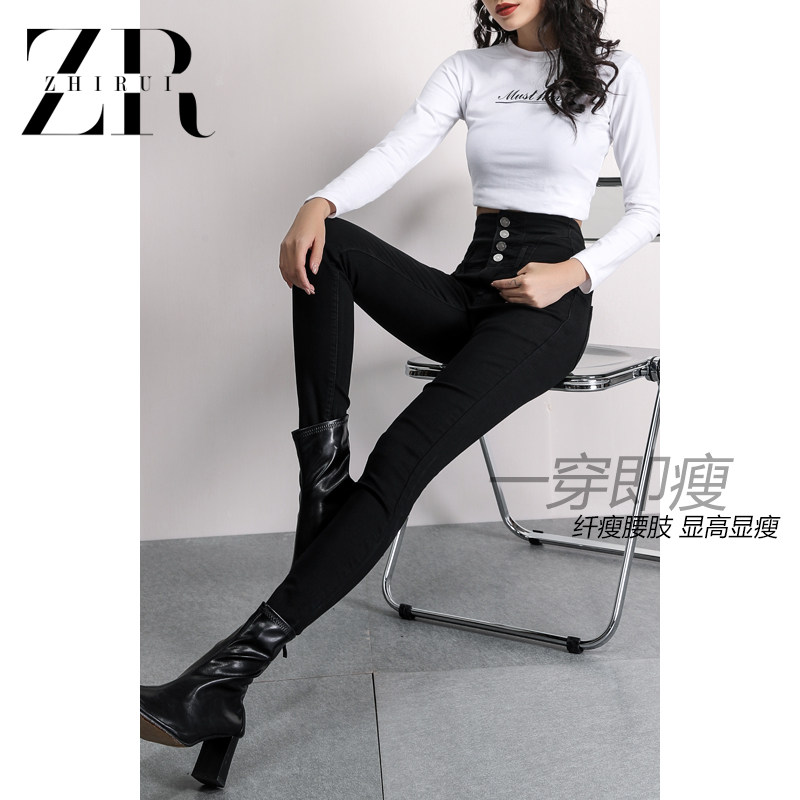 Black four - row jeans female high waist and smoke tube pants 2022 new elastic tightness skinny trousers