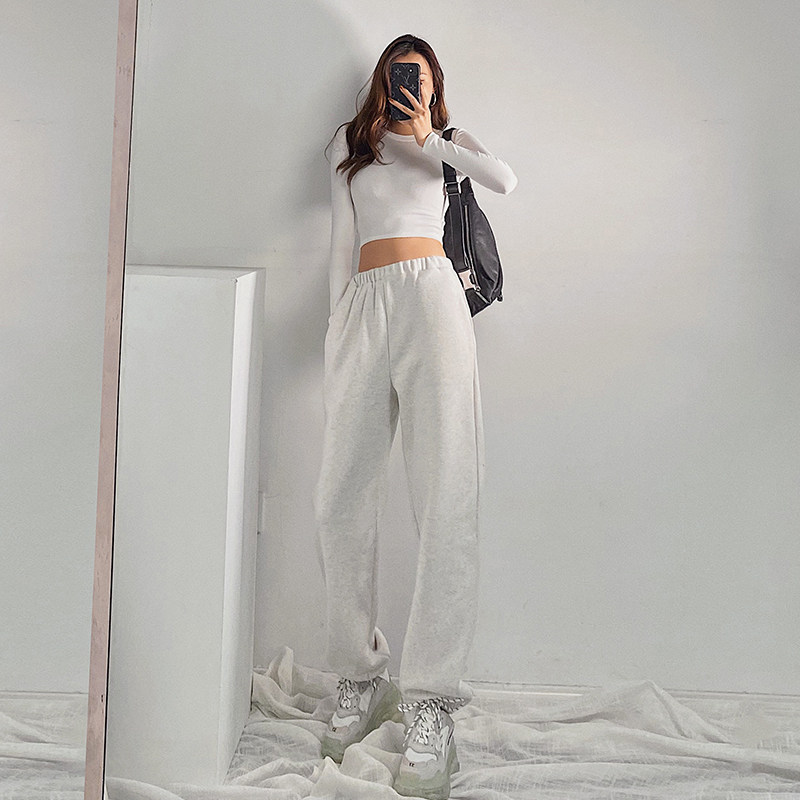 Europe and the United States ins spring and autumn new pants casual tie foot sweatpants women loose high waist jazz dark gray guard pants