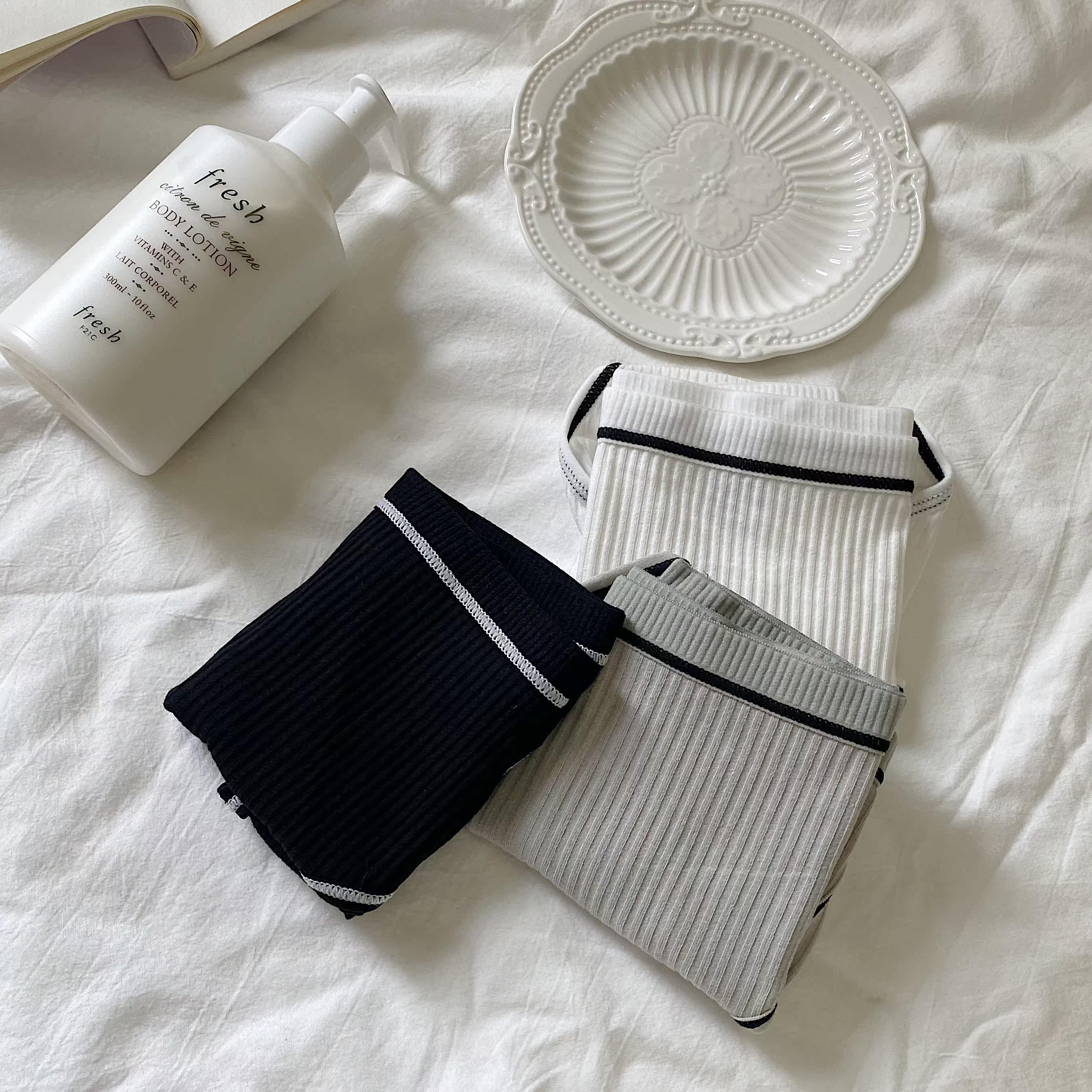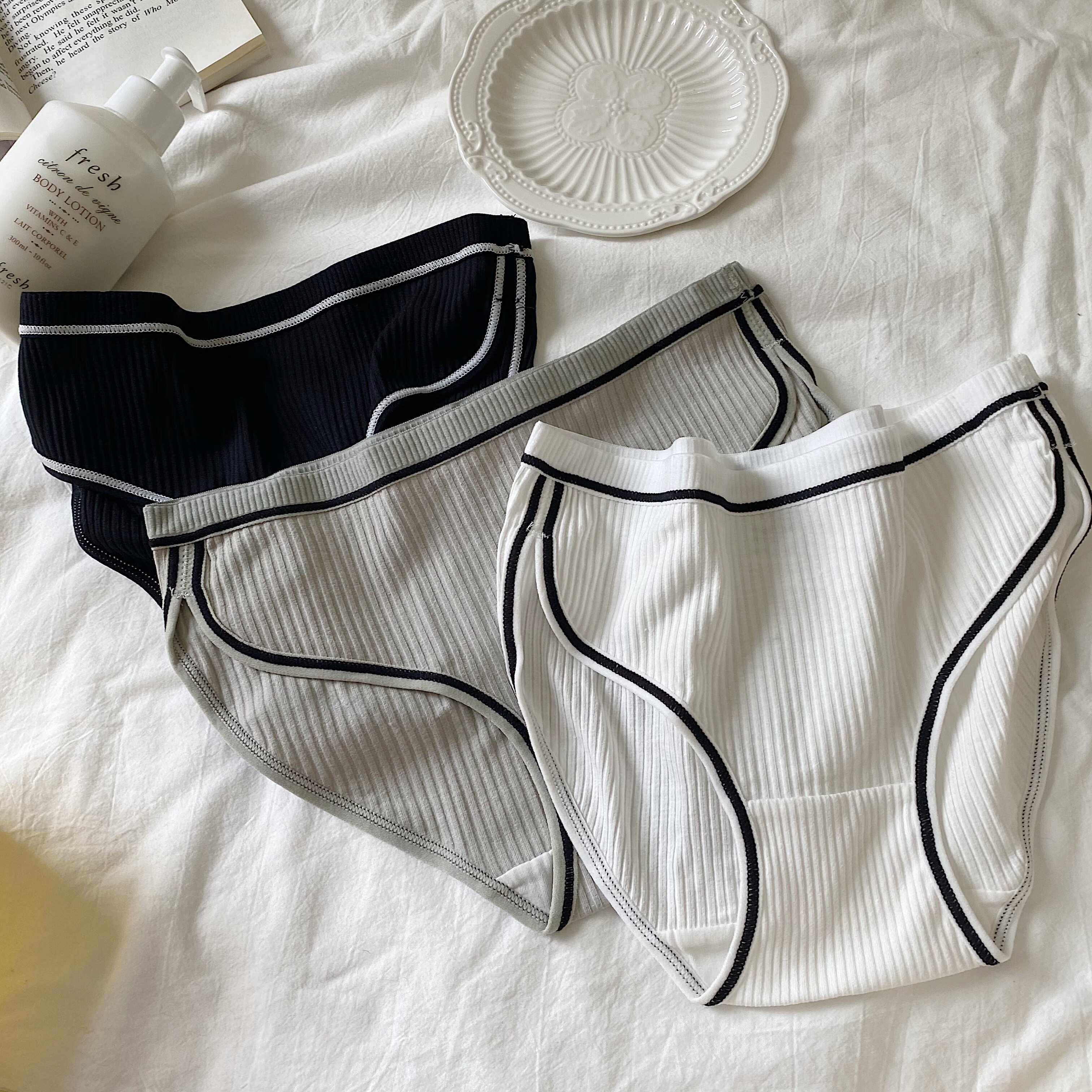 Happy every day classic black and white gray ~ simple sports striped low-waist girls briefs cotton panties 113