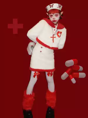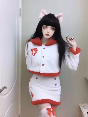 (Uniform party) nurse Sailor-JK uniform winter plush red White autumn winter plus velvet uniform set spot