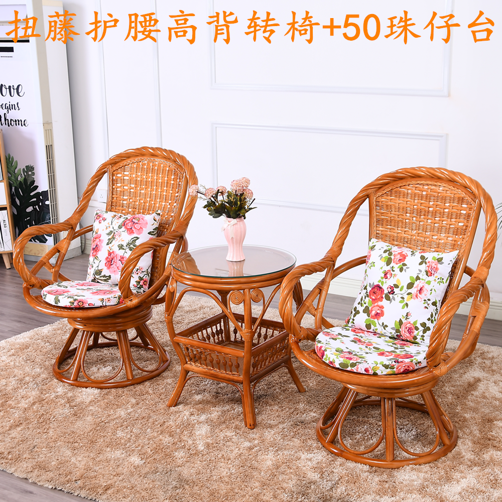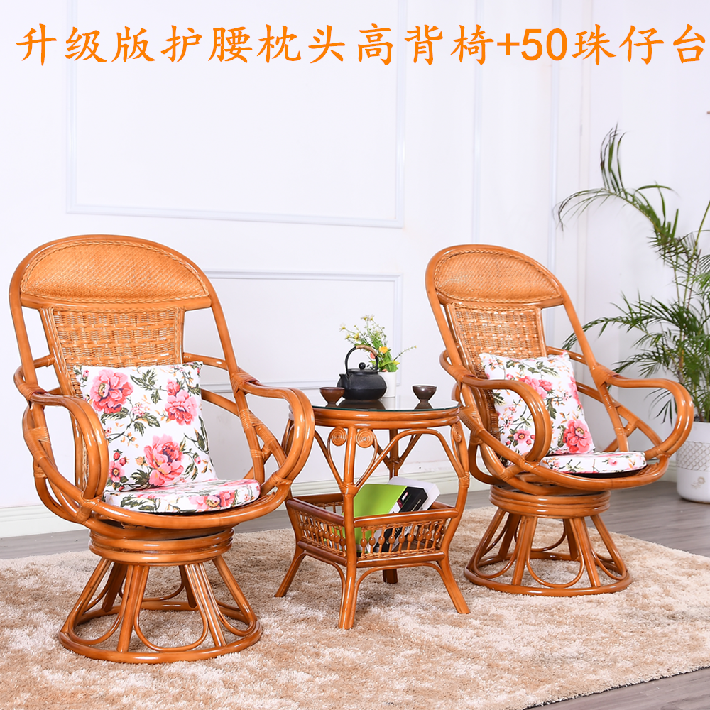 High back natural rattan balcony three-piece table and chair combination rattan chair leisure swivel backrest rattan weaving single household