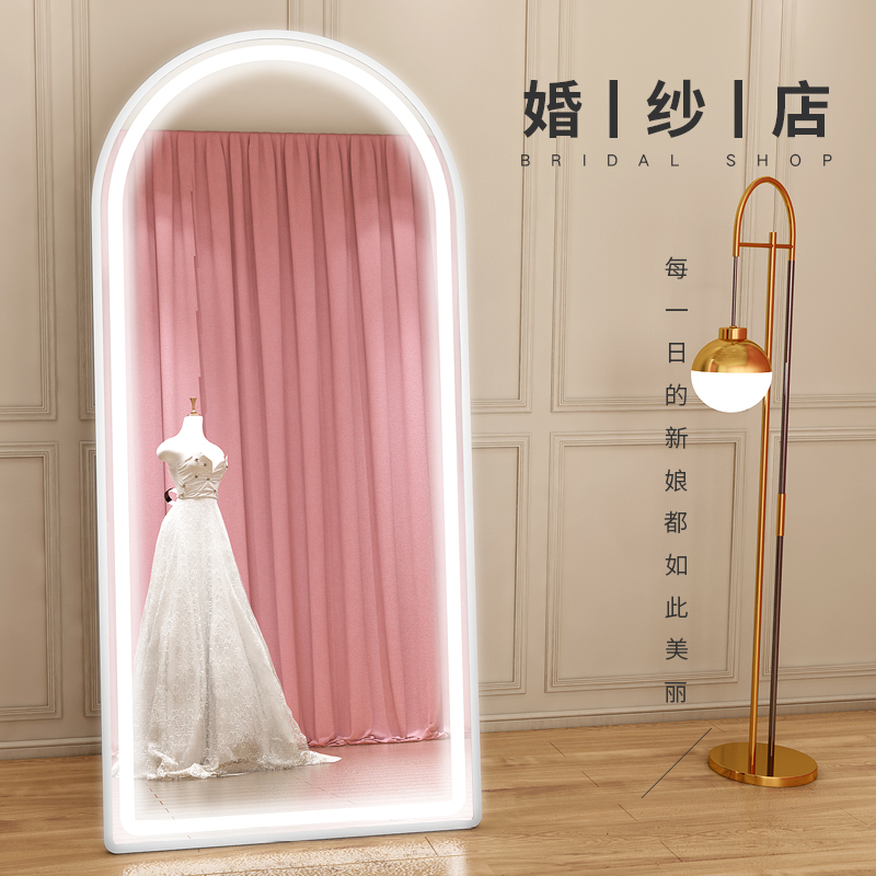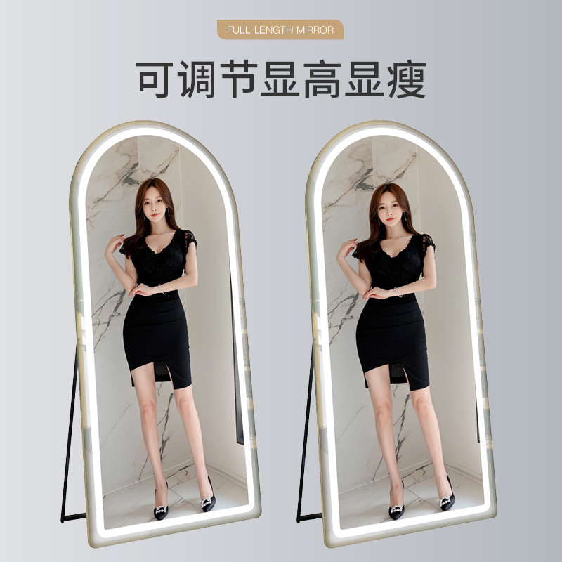 Smart LED Light Mirror Clothing Shop Display Slim Full Body Mirror Mesh Red Selfie High-definition Beauty Supplement Light Floor Full Body Mirror