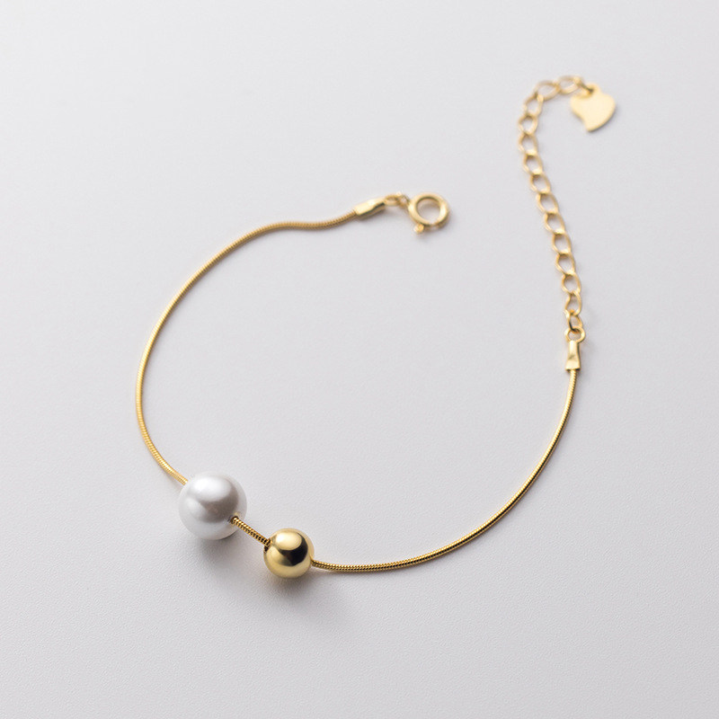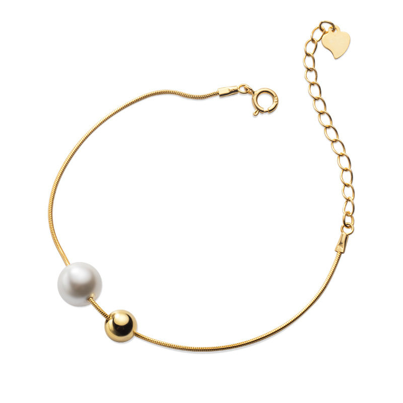 Simple pearl bracelet s925 sterling silver shell beads light luxury gold snake bone chain niche net red ins scenery beads jewelry