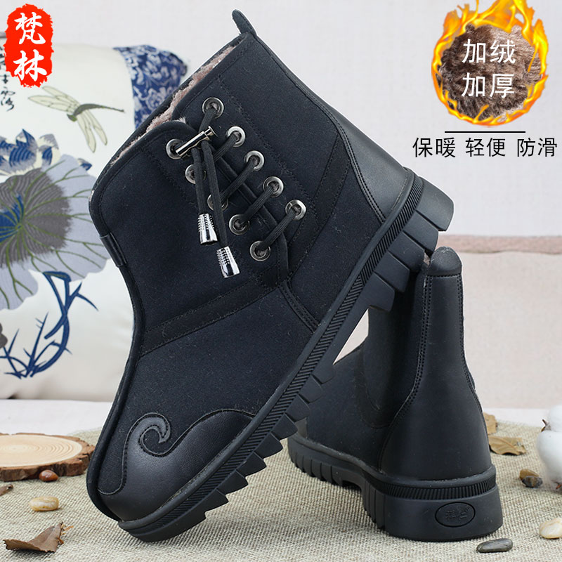 Winter road shoes plus velvet thick cotton boots snow boots non-slip wear-resistant Taoist shoes Xiangyun cotton shoes Zen monk shoes