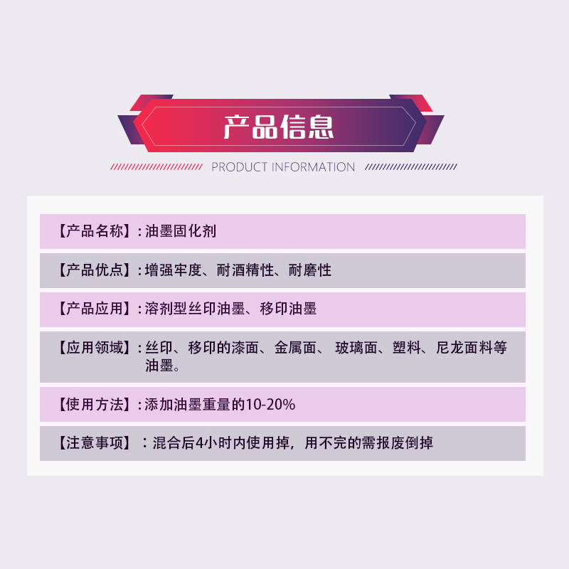 Screen printing ink firming agent web version print transfer printing ink hardener Enhanced adhesion 100 gr