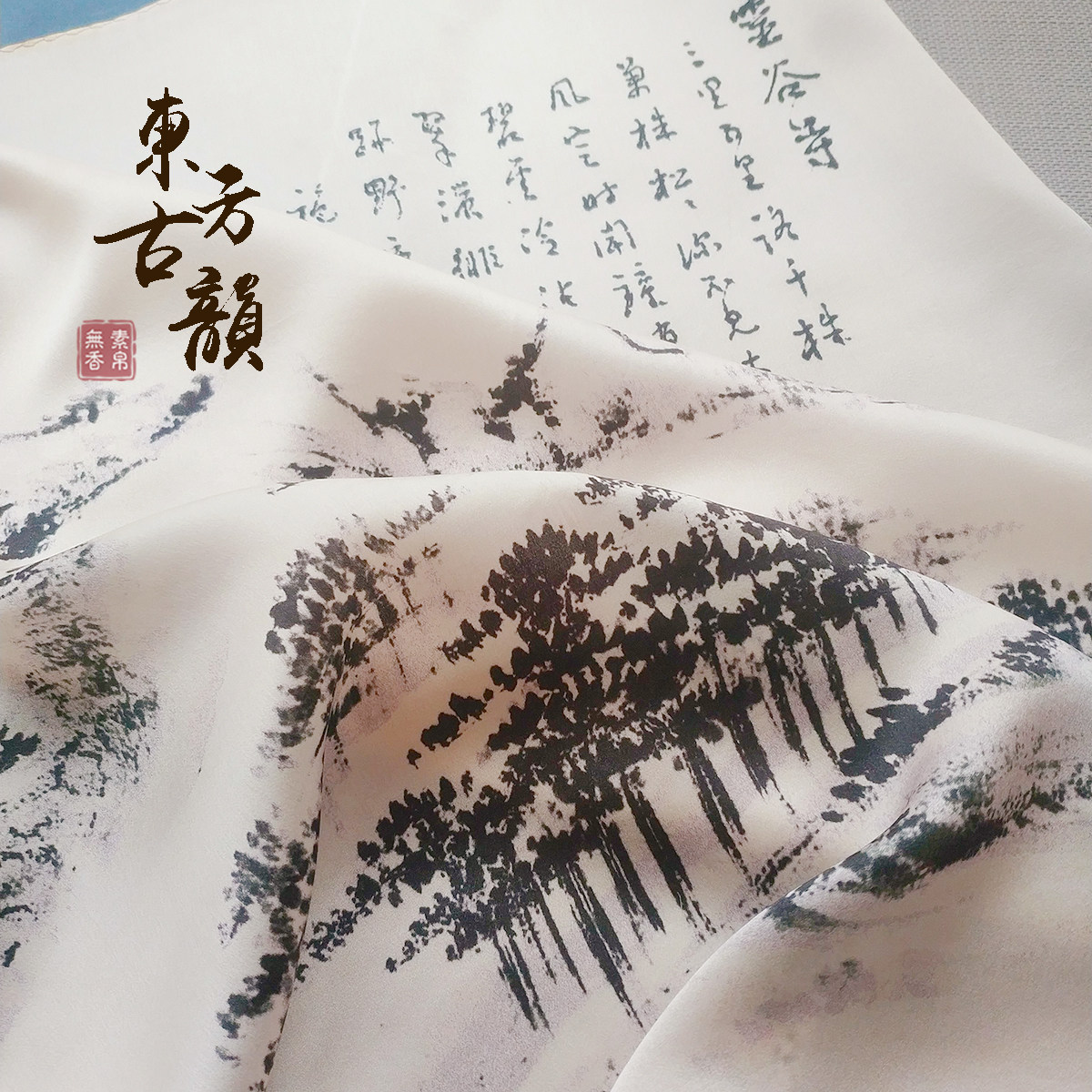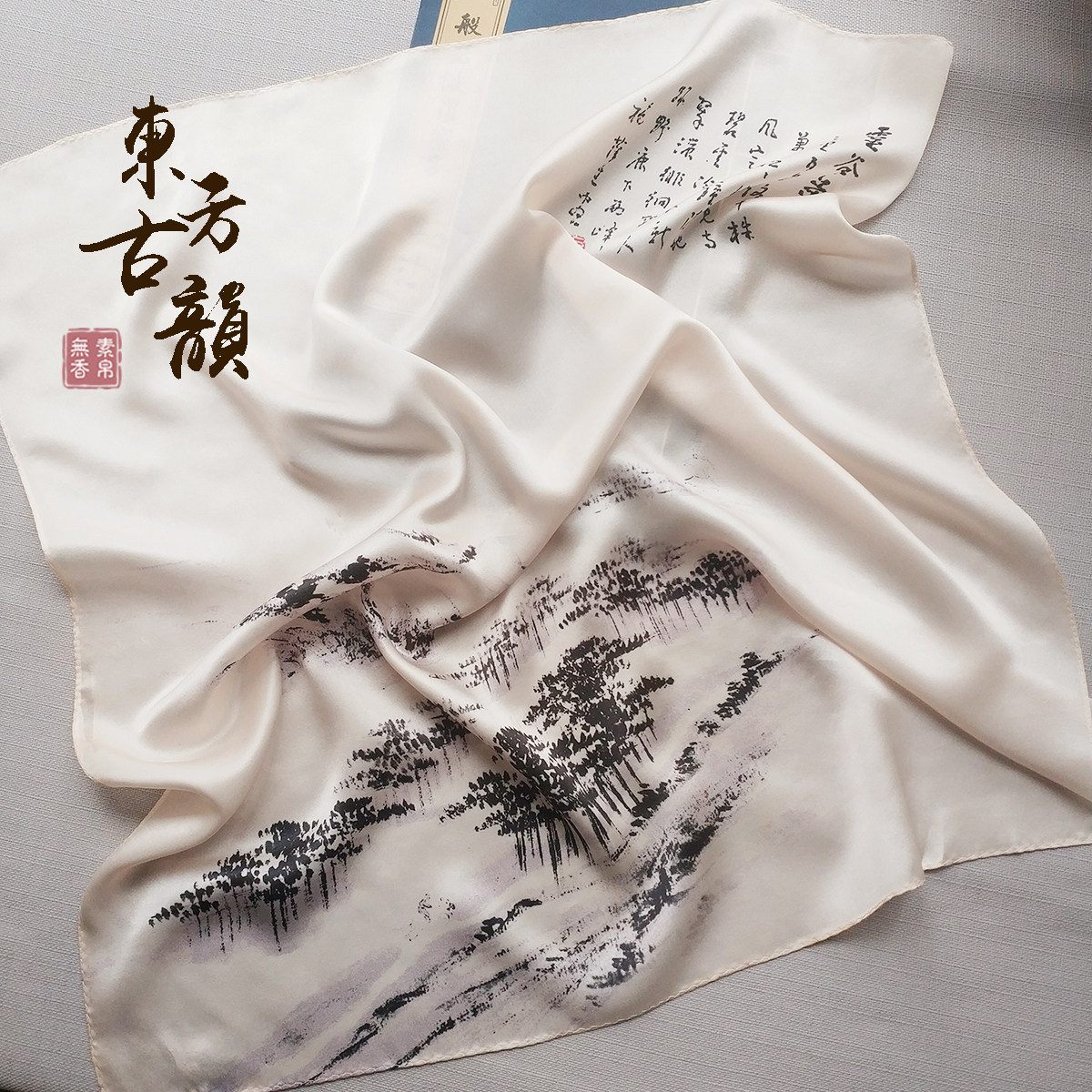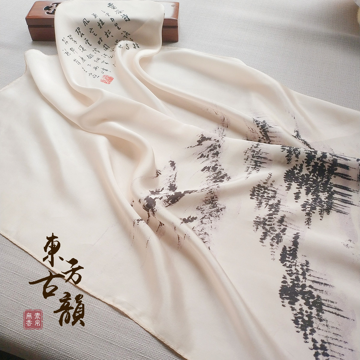 Vegetarian and silk without incense mulberry silk ink version print Chinese ancient wind floating in elegant and elegant 100 hitch a little square towels Teacher's Day gift