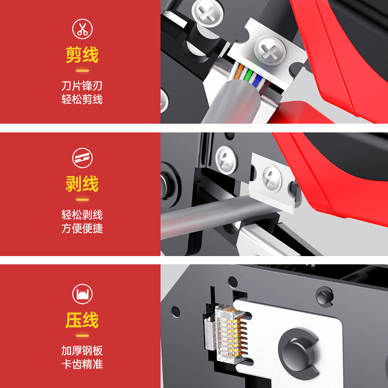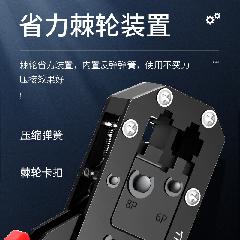 Multifunctional network cable pliers super five category six network broadband crystal head crimping pliers professional grade home 8P6P telephone crystal head engineering clamp clamp