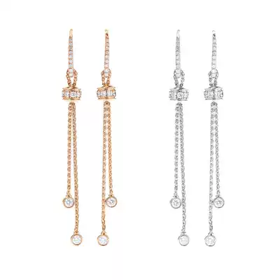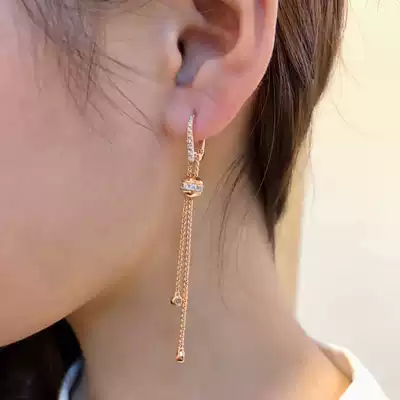 Imported moisanshi pure 18k platinum earrings Au750 rose gold double tassel earrings 10 points diamond star same female