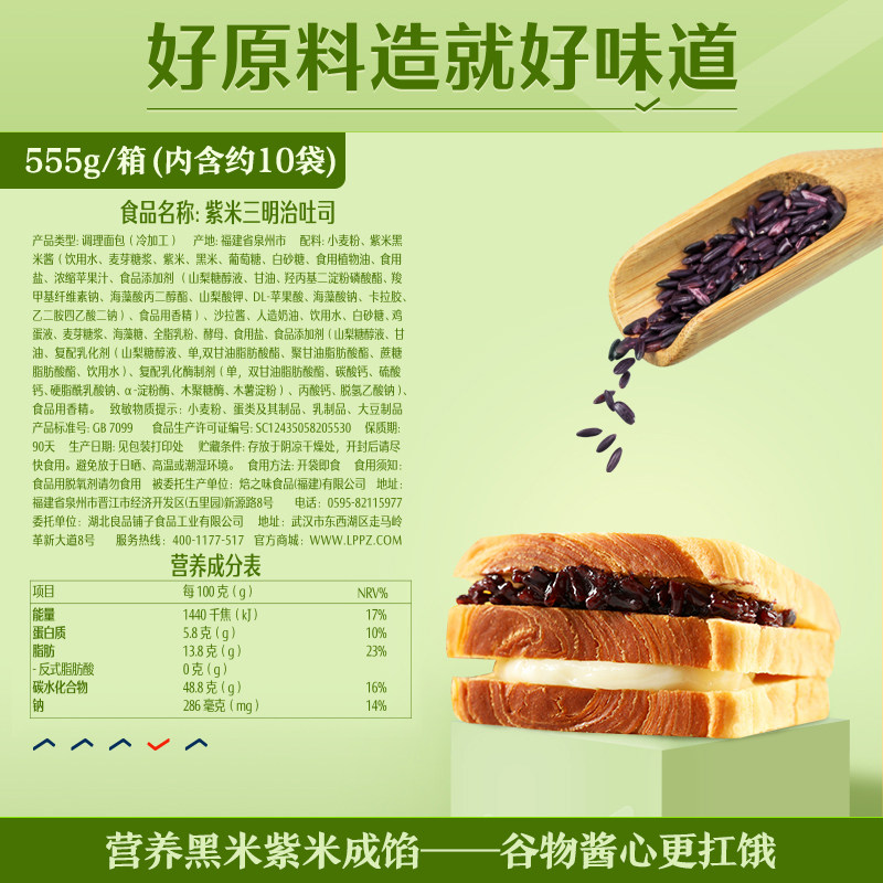 Good Pint Pawn Purple Rice Bread Black Rice Sandwich Toast Toast Breakfast Nutrition Sandwich 555g Casual Food