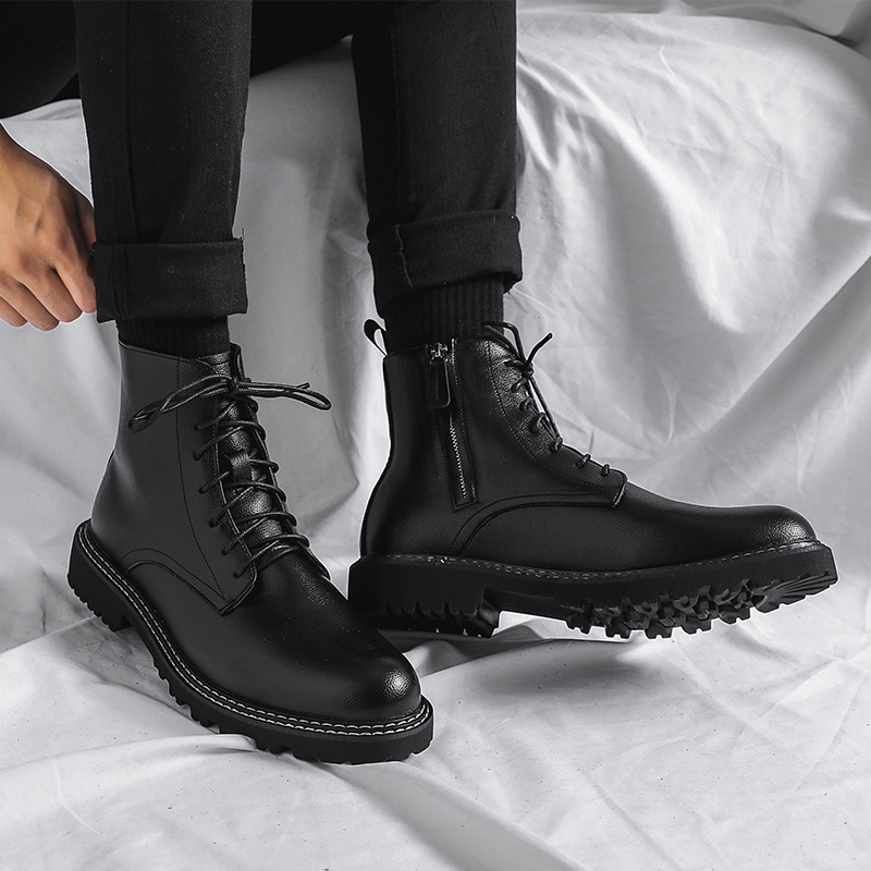 Chelsea Martin boots men's spring and autumn British style winter velvet high-top leather shoes motorcycle mid-tube short boots men