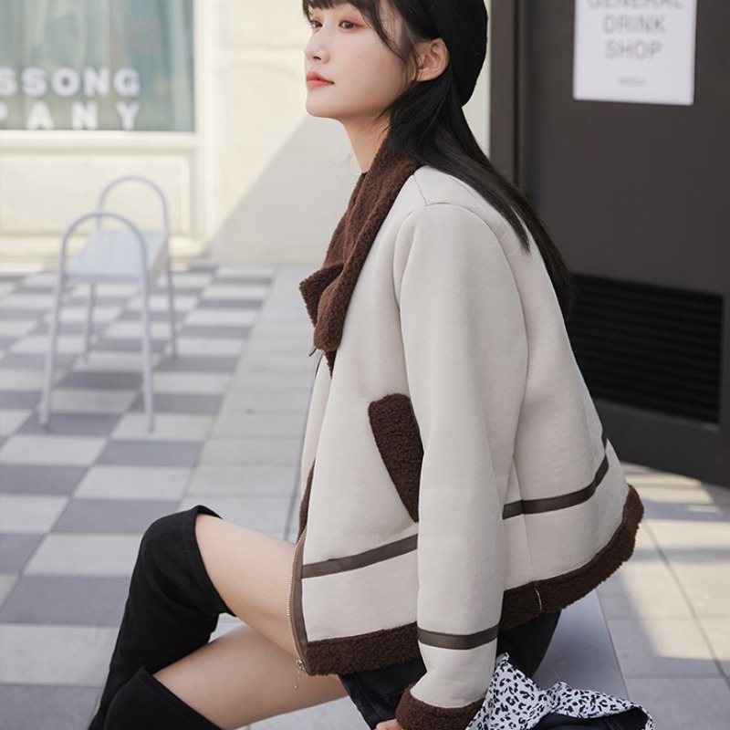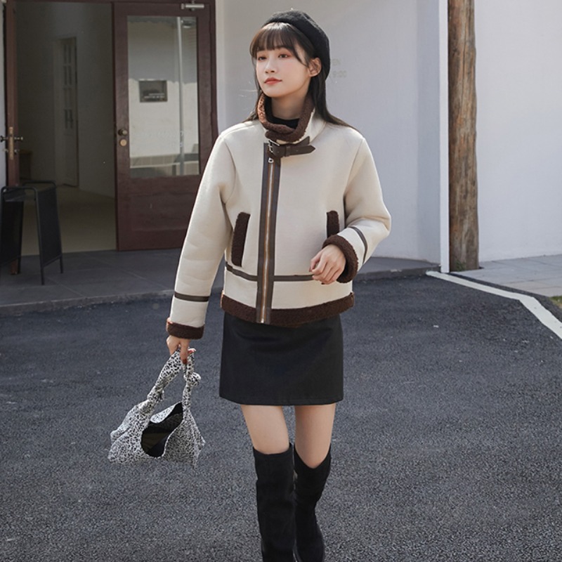 Sanskrit lamb wool coat female winter short leather fur integrated Korean version loose grain suede thickened small sub locomotive clothes
