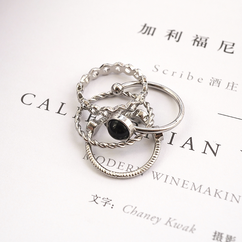 KANSAI ring 4 piece set combination cold wind Japanese and Korean Japanese and Japanese Japanese and Japanese female opening ring in tide net red tail ring