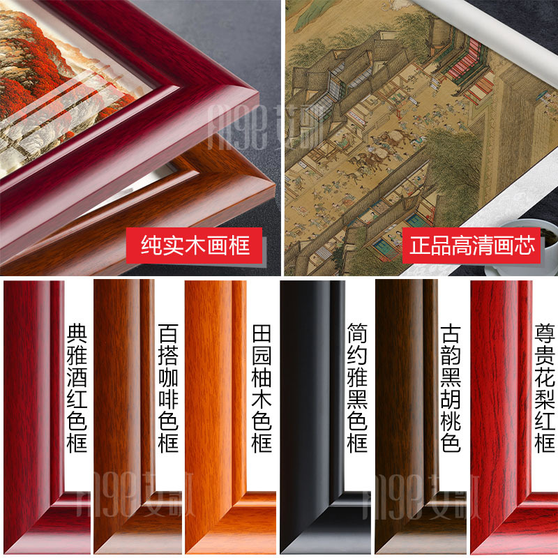 Wine red pure solid wood frame HD rice paper painting core moisture-proof backboard hand-mounted (recommended) Brown solid wood frame high-definition rice paper painting core moisture-proof backboard hand-mounted