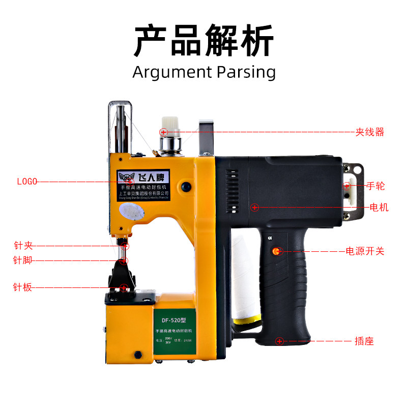 Flying man brand small GK9-520 gun type portable electric sewing machine woven bag baler sealing machine