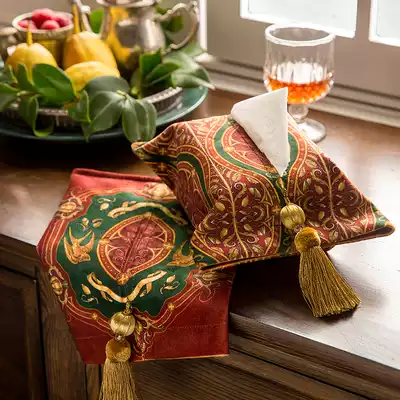 Fan Jing attitude Bach festival red retro light luxury car tissue box living room tissue towel bag cloth art set