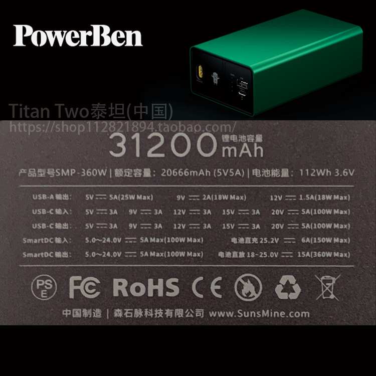 PowerBen Mobile Charger 31200mAh mAh Power Bank Notebook PD100W Fast Charge SmartDC