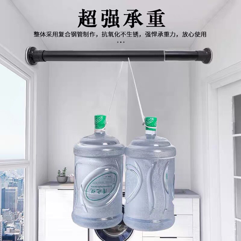 Bedroom with punch-free window curtain rod Balcony Clothesline Telescopic Rod BATH CURTAIN ROD MULTIFUNCTION EASY FROSTED BLACK ROMA POLE