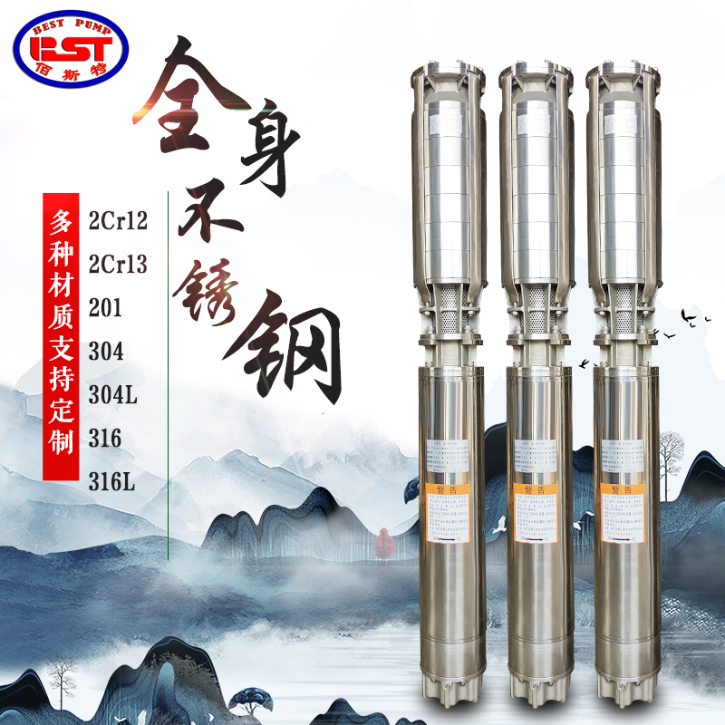 Three-phase submersible pump 380V high lift 304 stainless steel deep pump 316 pump 400 meters 2Cr12 customized
