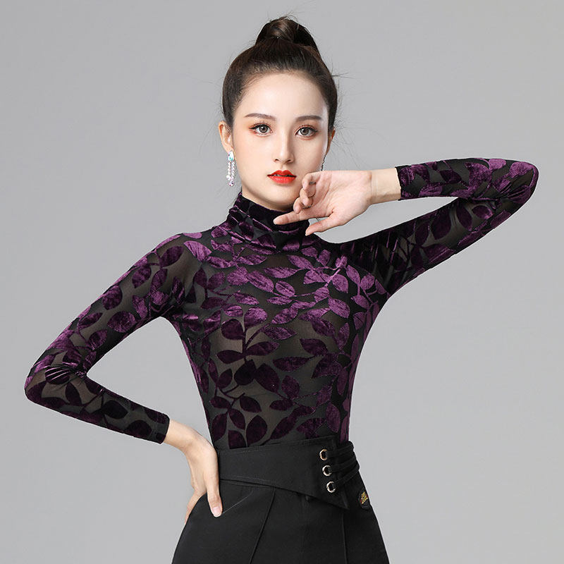 Dan Bao Luo ballroom dance autumn dress modern dance stretch shirt tops net red Latin dress Spring and Autumn dance dress women dance clothes