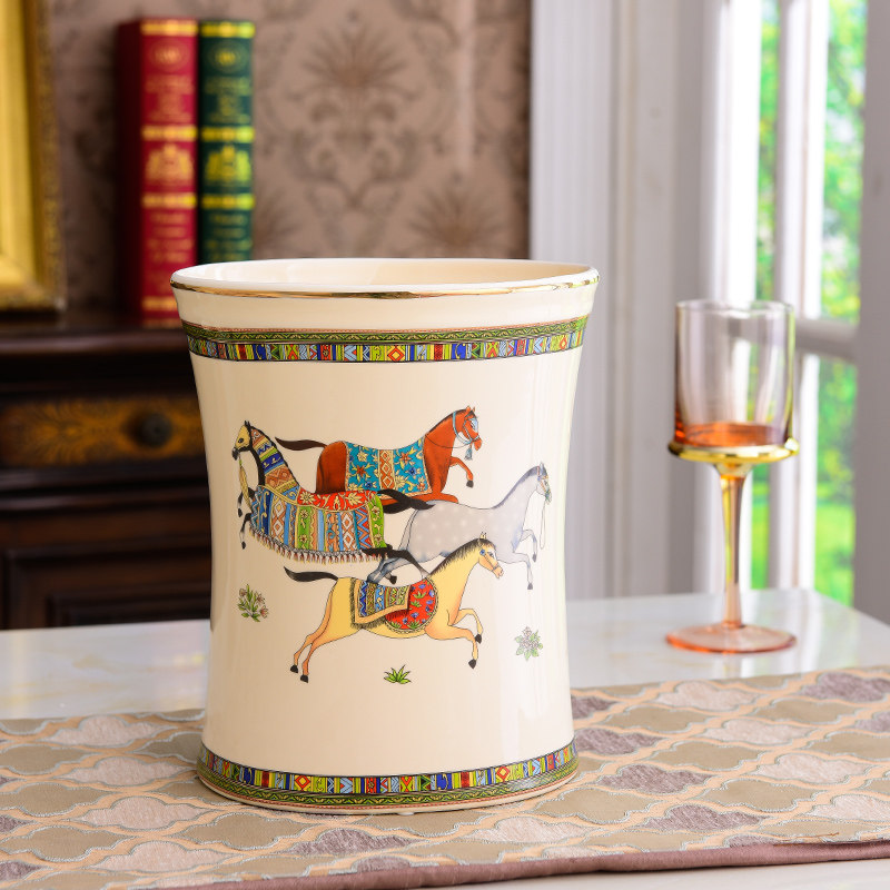 European personality barrel ceramic garbage bin desktop household ashtray furniture pieces of trash dish mini-accessories